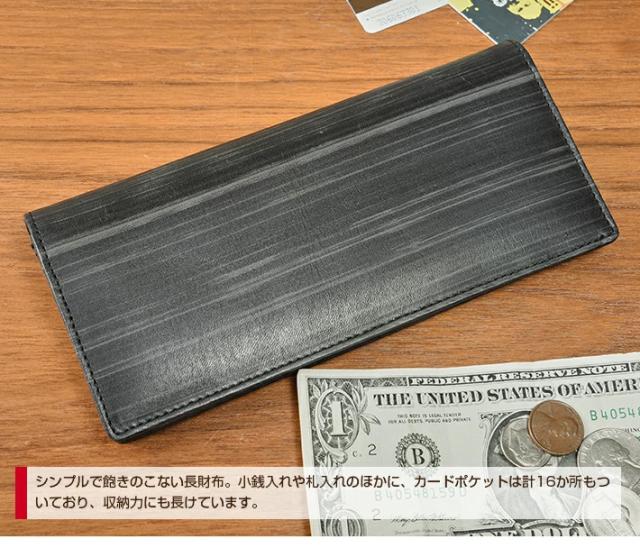 | 商品説明 | 職人が一枚一枚丁寧に仕上げた国産革を使用したブラッシングレザーシリーズ。シンプルなかぶせタイプの長財布。サっと開きやすく、中も見やすいのが便利です。小銭入れや札入れのほかに、カードポケットは計16か所もついており、収納力にも長けています。 |