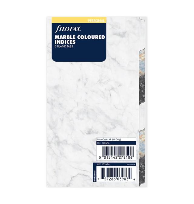 ファイロファックス システム手帳 リフィル バイブルサイズ Marble Blank インデックス 6 Tabs Filofax 6穴 聖書サイズ 132676