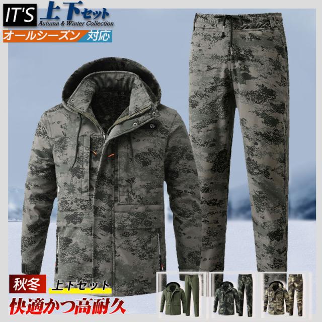 防寒ジャケット 作業着 上下セット メンズ 作業服 迷彩 厚手 デッキジャケット ミリタリージャケット 防寒 お出かけ 保温 秋冬 暖かい ブルゾン