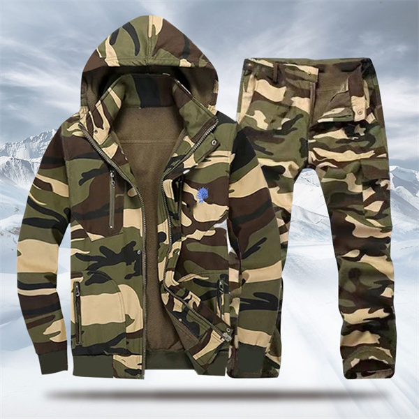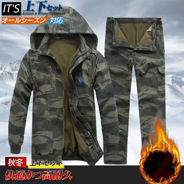 作業服 上下セット マウンテンジャケット 迷彩柄 メンズ 厚手 登山服 スキーウェア マウンテンパーカー アウトドアウェア ズボン ハイキング