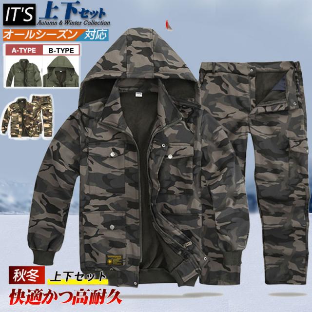 作業服 上下セット メンズ マウンテンジャケット 迷彩柄 ミリタリージャケット 防寒 防水 作業 防風 厚手 マウンテンパーカー 長ズボン