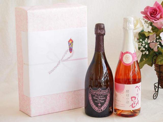 正規ドンペリニヨンロゼギフトボックス2本セット シャンパンドンペリニヨンロゼ(フランス)750mlスパークリングロゼワイン酵母の泡ベーリーAロゼ(やや辛口)(山梨県)750ml