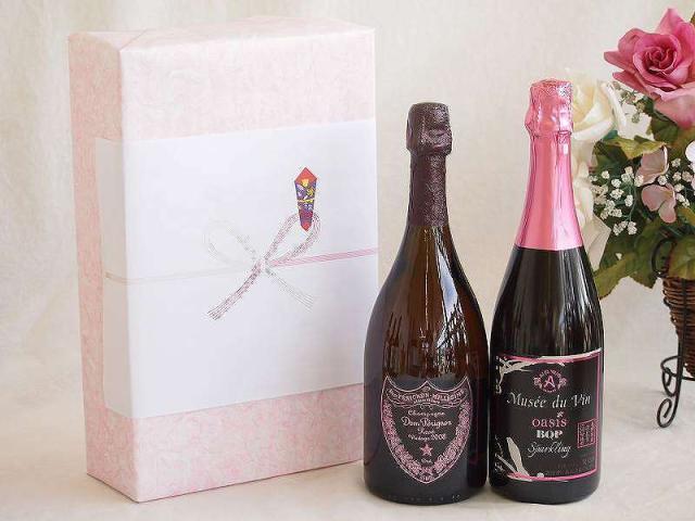正規ドンペリニヨンロゼギフトボックス2本セット シャンパンドンペリニヨンロゼ(フランス)750mlスパークリングロゼワインブラッククイーンピンク(長野県)750ml