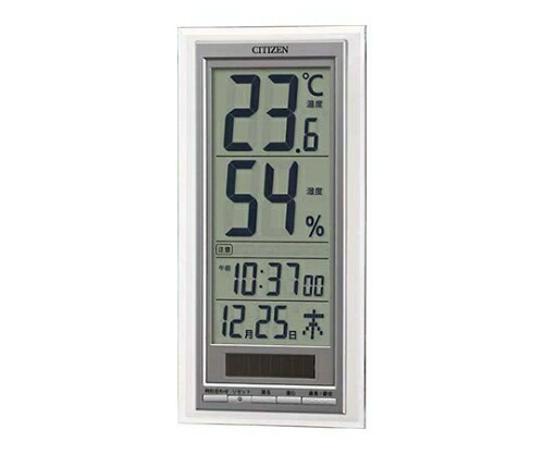 ●機能:高精度温湿度計/温度表示付/湿度表示付/環境目安表示付/24〜25時間以内の最低/最高値(温度・湿度)表示機能付/ソーラーパワーアシスト式/時刻表示付(クオーツ)/カレンダー付/電池寿命約5年/単3電池×2本付属