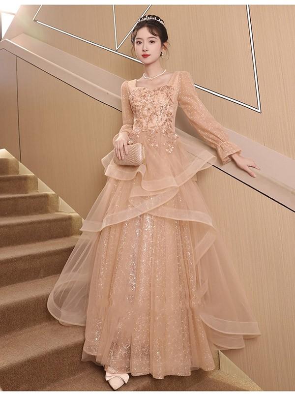 ドレス 大人 ピアノ 発表会 ロング丈 ぽっちゃり 大きいサイズ イブニングドレス 演奏会 ピアノ発表会 袖付き ワンピース Aライン ステージドレス 二次会 女子会 成人式 パーティードレス 大人可愛い bg056zezel9