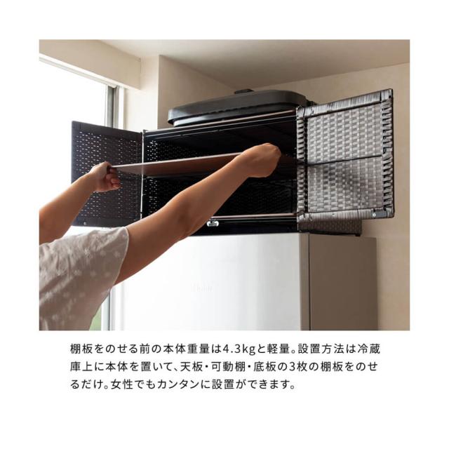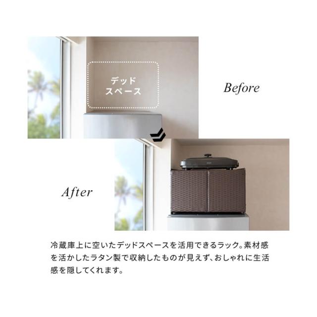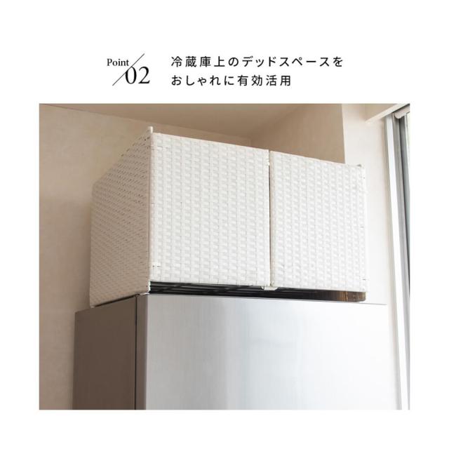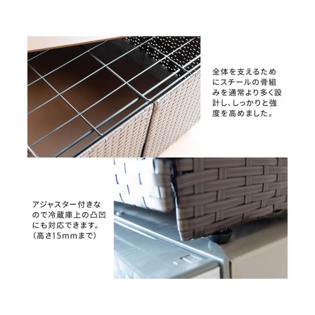 冷蔵庫上ラック キッチン収納 レンジラック キッチンラック キッチンスペース 冷蔵庫上収納 人工ラタン 冷蔵庫 収納棚 2段