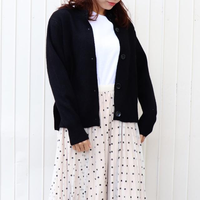 シンプルなコーデに羽織るが特徴的なニットカーディガン