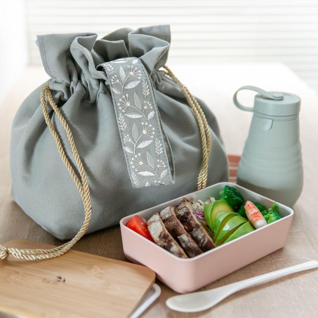 《 LH12010 弁当箱 お弁当グッズ ランチトートバッグ ランチトート トートランチバッグ 手提げ 手さげ バッグ カバン 巾着カバー 通学 通勤 ピクニック アウトドア レジャー 小学生 中学生 高校生 大学生 社会人 大人 シンプル 無地 インド刺繍 くすみカラー レディース オシャレ お洒落 かわいい 可愛い カワイイ アイボリー 白 グレー 灰色 》