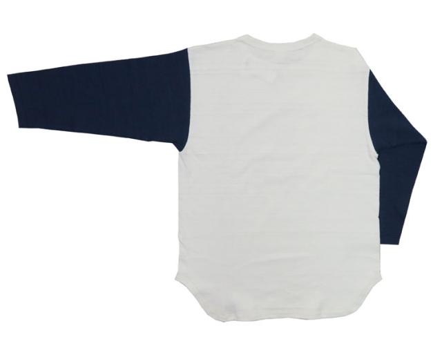 ウエアハウスの定番生地ともいえる、12番のムラ糸、天竺ボディを使用したベースボールシャツです。自然なムラ糸を再現した単糸はそれだけで風合いがあり、