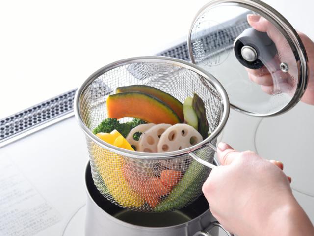 さまざまな調理に大活躍のマルチポットに、ステンレス製のストレーナーがセットになって登場! 「蒸す・揚げる・茹でる」の調理がさらに便利になりました。ストレーナーは、野菜などを洗ったりザルとして水切りに使ったりと単体でも便利にお使いいただけます。