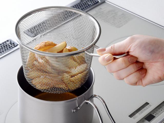 ストレーナーがついたことで、下ごしらえや揚げ物を一気に引き上げる際など、さらに調理の幅が広がりました。