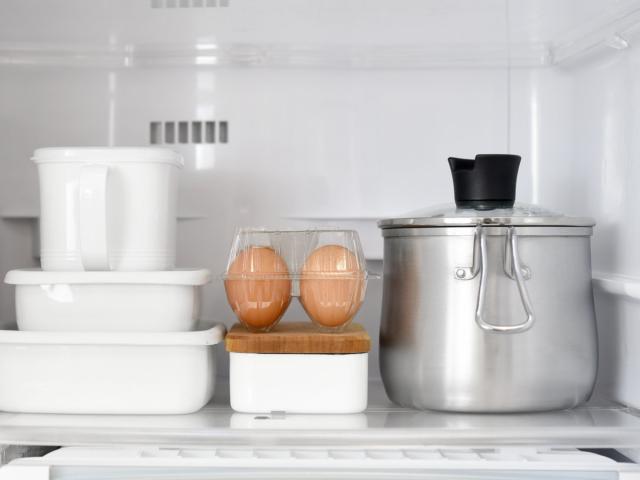 熱、酸、アルカリなどに強く、におい移りや色移りもしにくいステンレス製なので、余った料理の保存や作り置きにピッタリです。ハンドルが下向きになっているので、冷蔵庫の中でも邪魔にならず、スッキリ収まります。
