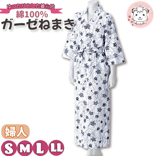 ガーゼねまき パジャマ 寝巻 寝間着 S/M/L/LL | レディース パジャマ 前開き 介護パジャマ 全開パジャマ ネグリジェ ナイトウェア ホームウェア ルームウェア