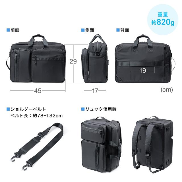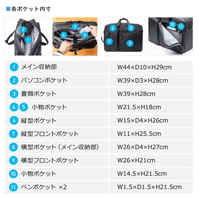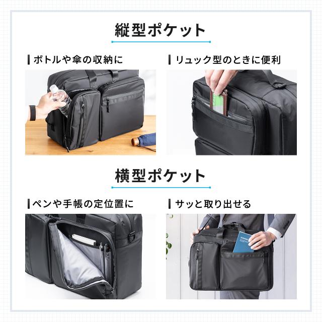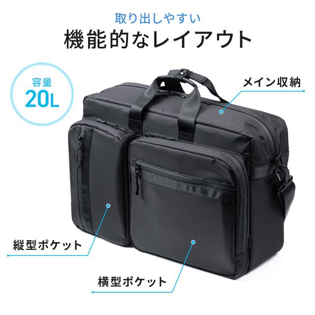 ビジネスバッグ ビジネスリュック 3WAYバッグ 超軽量 超撥水 大容量 止水ファスナー キャリーサポーター 14リットル[200-BAG184BK]