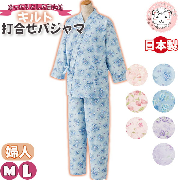 キルト 打合せパジャマ 前開き 寝巻 寝間着 M/L | レディースパジャマ 介護パジャマ 全開パジャマ かわいい 日本製 ナイトウェア ホームウェア ルームウェア