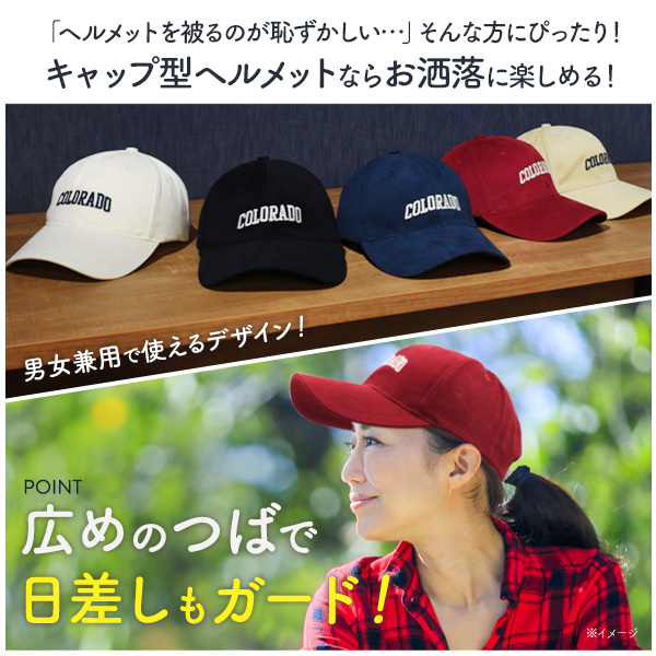 「ヘルメットを被るのは恥ずかしい…」という方にぴったりなキャップ型ヘルメットです。ヘルメットに抵抗がある方でも気軽に被ることができる、お洒落なデザインです。男女兼用で使えて、広めのつばで日差しもガードしてくれます。