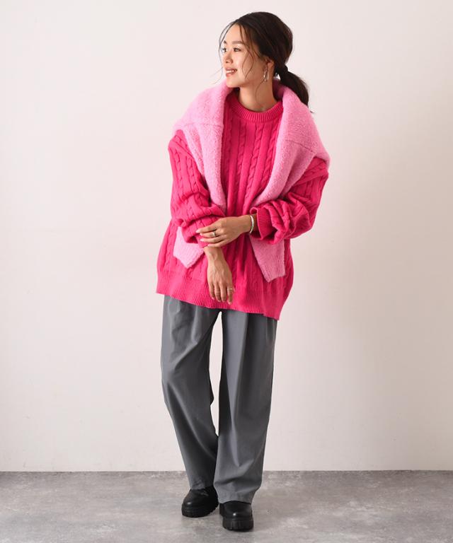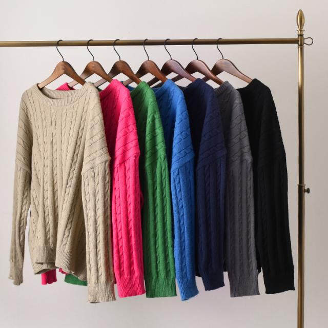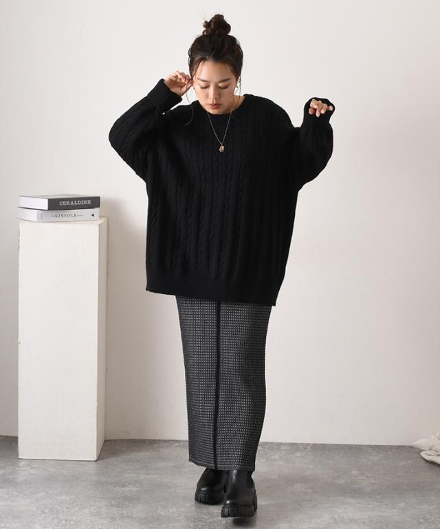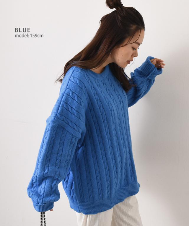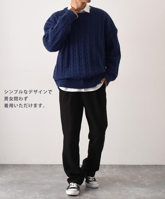 新作 ラウンドネックオーバーサイズケーブルニット レディース メンズ トップス 長袖 ケーブルニット オーバーサイズ 大きいサイズ ビッグサイズ ビッグシルエット チュニック 秋 冬 秋冬 着回し ゆったり セーター