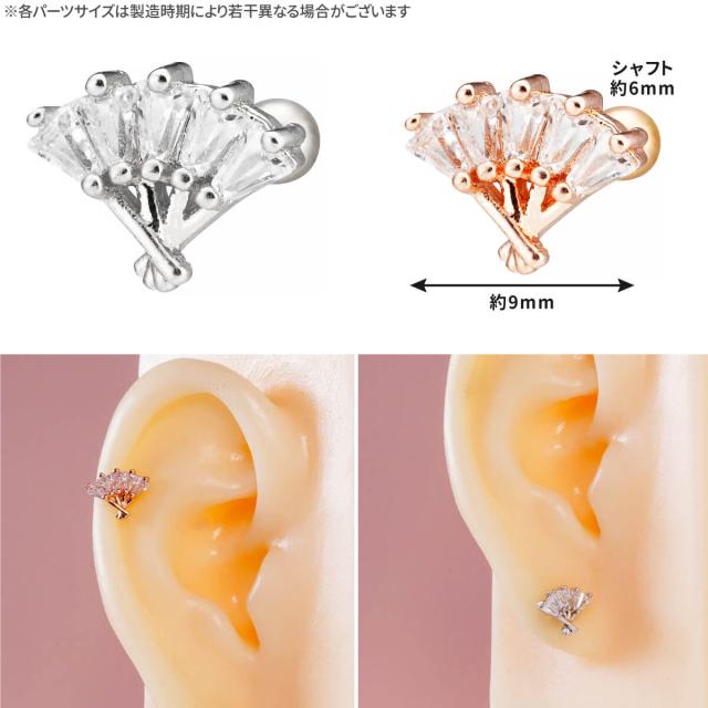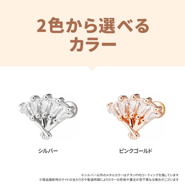 扇子 モチーフ ジュエル ストレートバーベル 14G 16G 18G 20G サージカルステンレス ジルコニア ヘリックス 軟骨ピアス ボディピアス 扇