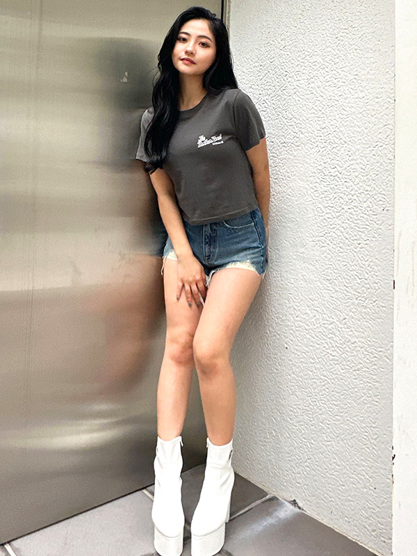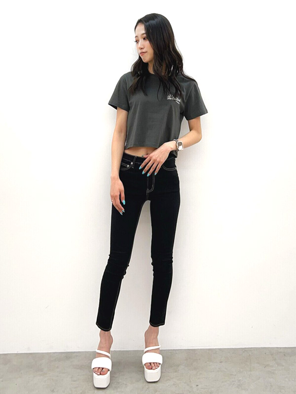 ミニマルなアイテムをシルエットや色でスタイリングして、エッジィさを出すLAのギャルのように、