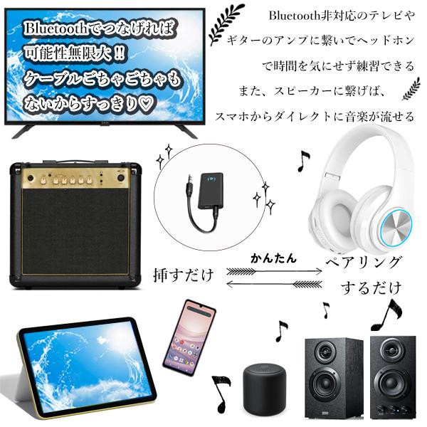・有線イヤホン・スピーカーなどをワイヤレス化しBluetooth搭載のスマホなどの音楽を楽しめます。