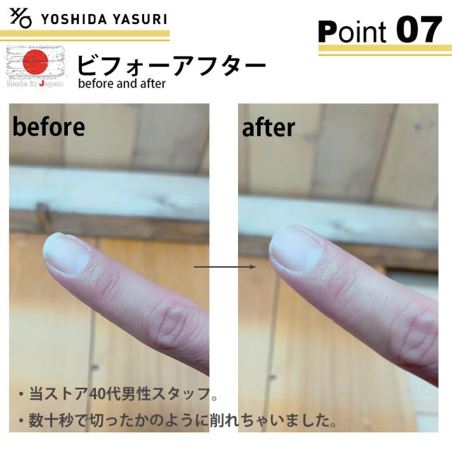 | 商品説明 | 吉田ヤスリ製作所の爪ヤスリは1本1本職人の手作りです。 素材はオールステンレスのため、サビにも強く衛生的にご使用いただけます。 また、ヤスリ目は摩耗することなく半永久的にご使用いただけます。 |