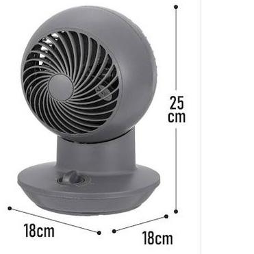 ●電源(V):単相100●消費電力(W)(50/60Hz):22/20●ハネ径(cm):12●色:グレー●幅(mm):180●奥行(mm):180●高さ(mm):250●電源コード長さ(m):約1.4●首振り:左右自動90°●風量調節:3段階●適合床面積:〜8畳●リモコン有無:無し●タイマー:なし●標準消費電力料金(50Hz):0.6円/h●標準消費電力料金(60Hz):0.54円/h●上下角度調節(手動):115°●最大風量(50/60Hz):5.9[[M3]]/min/6.6[[M3]]/min