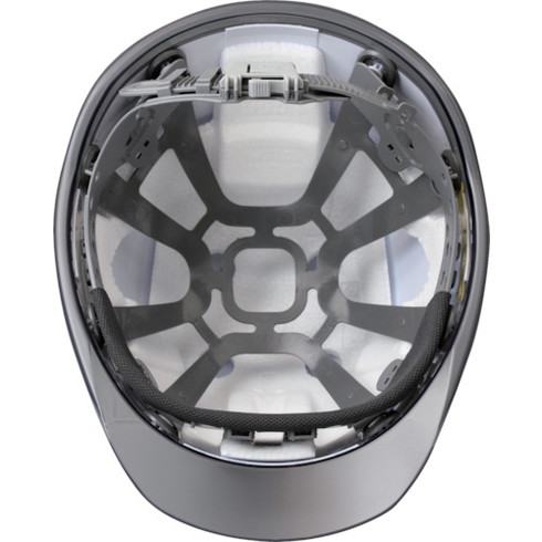 ●素材の改良により衝撃吸収ライナーの容積を従来品から約33%ダウンしました。●安全性は高いままでヘルメットの内部空間が広がり通気効率がアップしました。●クリアバイザーが上方視界を確保し、視界不良による事故やストレスを軽減します。●頭部から側面に回り込む、力強くシャープなリブ形状が帽体の強度バランスを向上させ、衝撃を分散します。●後頭部保護形状です。●脱げ防止機構が、前後からの衝撃によるヘルメットの脱げ・ズレを防ぎます。●雨天時の屋外作業に効果的なレインガード(雨垂れ防止溝)が付いています。●サイズ合せが簡単で、頭部にぴったりフィットするRAバンド仕様です。