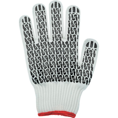 ●ポリエステル×綿の二重編みで強度+吸汗性UP。●滑り止めにPパターン[[R下]]を採用