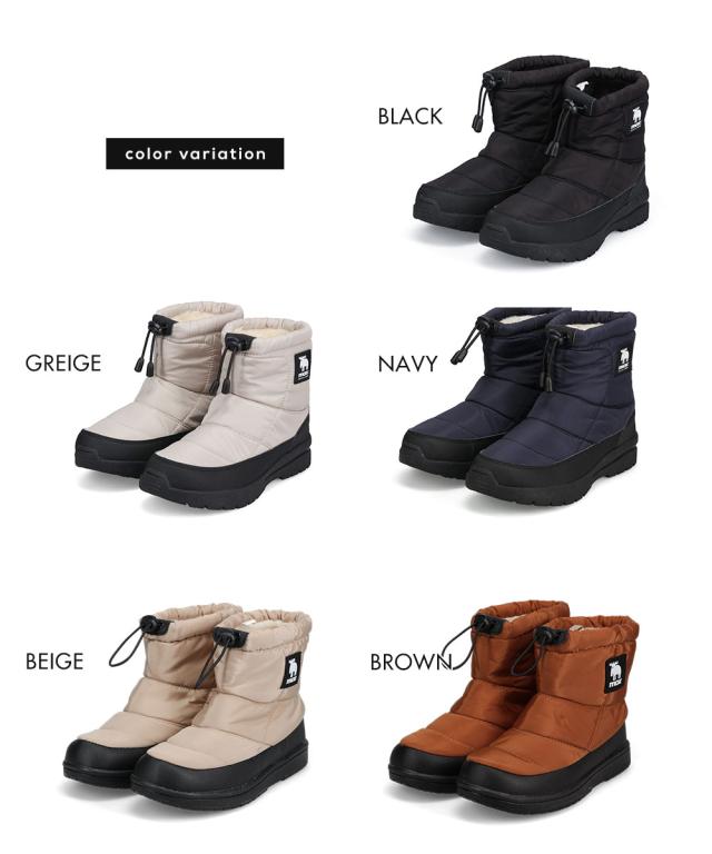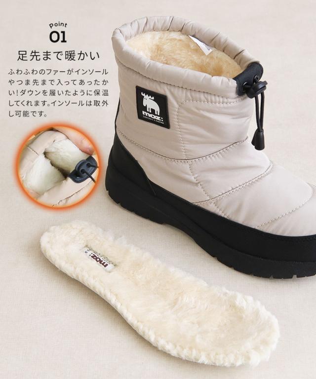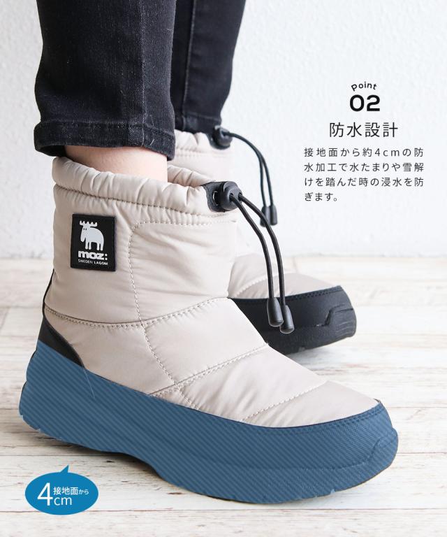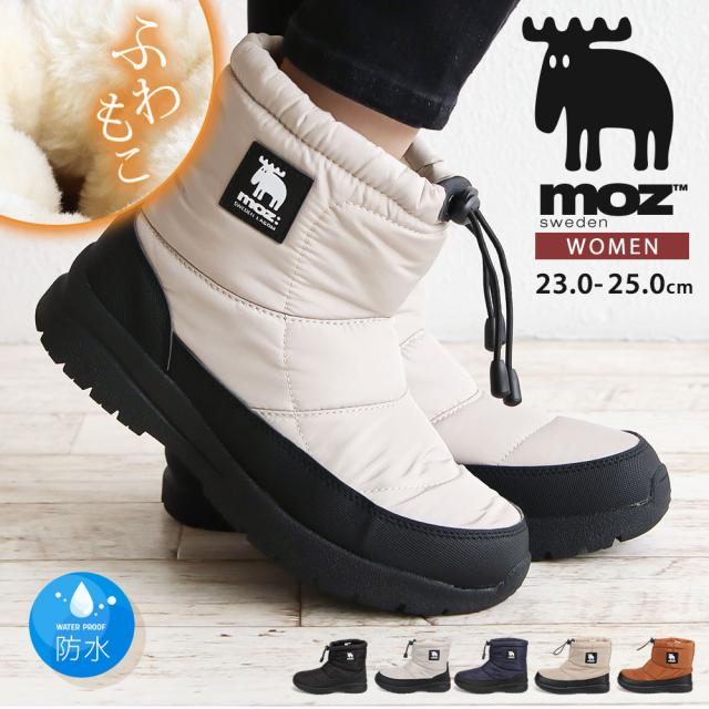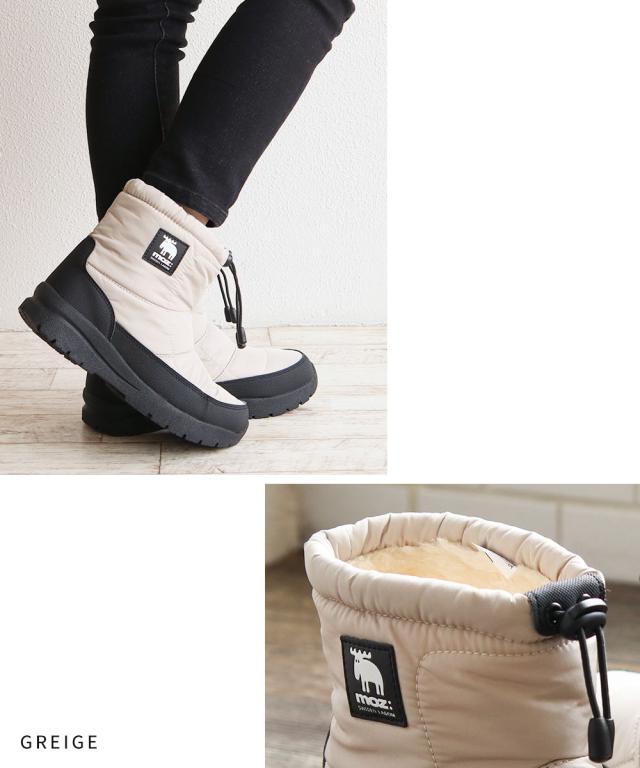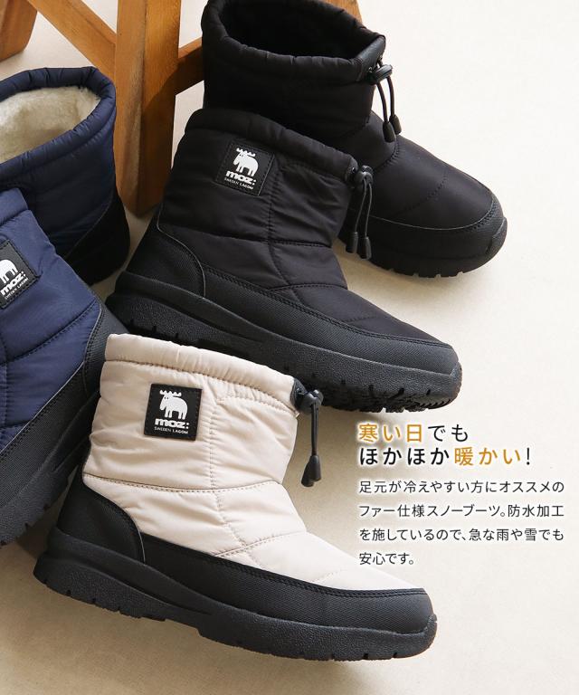 モズ moz スノーブーツ レディース 滑らない ショート 防水 おしゃれ 軽量 防滑 防寒 幅広 3e ファー もこもこ あったか 保温 かわいい 歩きやすい 軽い ジュニア 女の子 冬 カジュアル 防寒ブーツ ウィンターブーツ ナイロン 黒 ブラック グレージュ ネイビー ベージュ 5390
