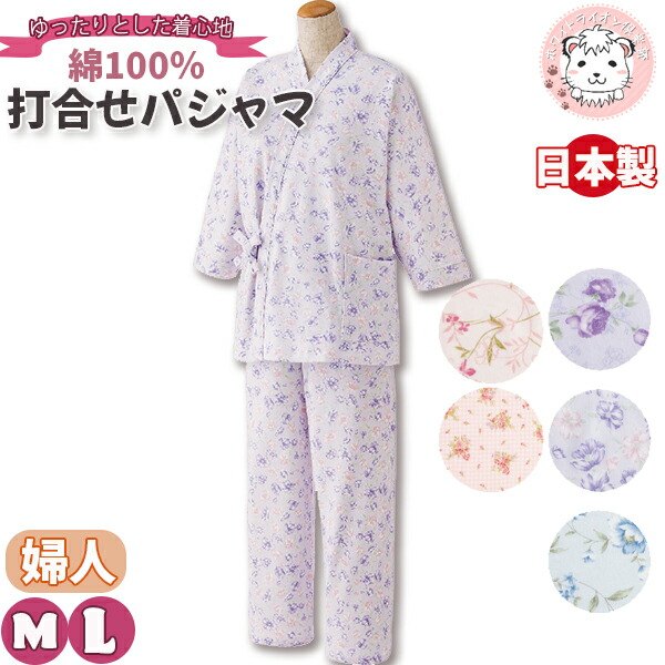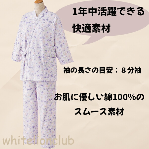 8分袖 打合せパジャマ 寝巻 寝間着 M/L | レディース パジャマ 前開き 介護パジャマ 全開パジャマ かわいい 日本製 ナイトウェア ホームウェア ルームウェア