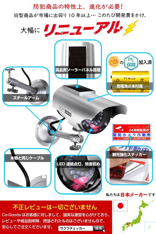 ダミーカメラ ソーラーパネル搭載 夜間用充電池付属 【改良版】 屋外 防犯ステッカー 通常2式(防水 耐光) 防犯カメラダミー ダミー防犯カメラ 監視カメラダミー セキュリティーステッカー