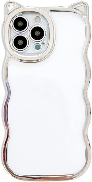 iPhone14plus クリアケース 猫耳 スマホケース (iPhone14plus, silver)