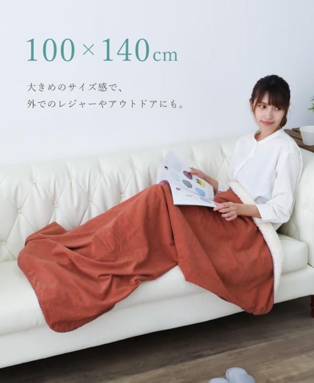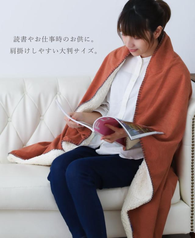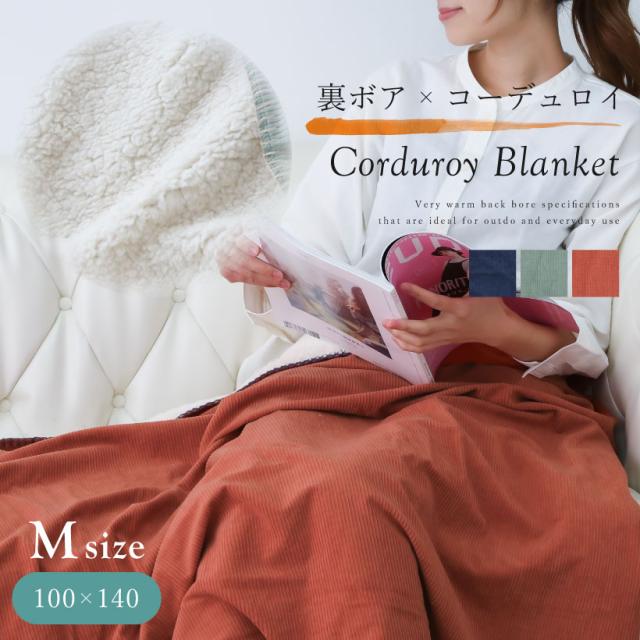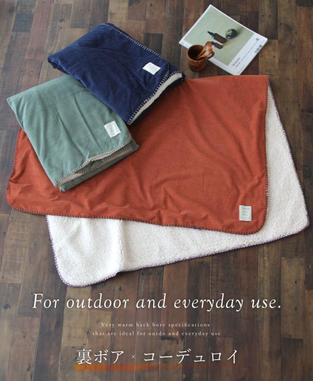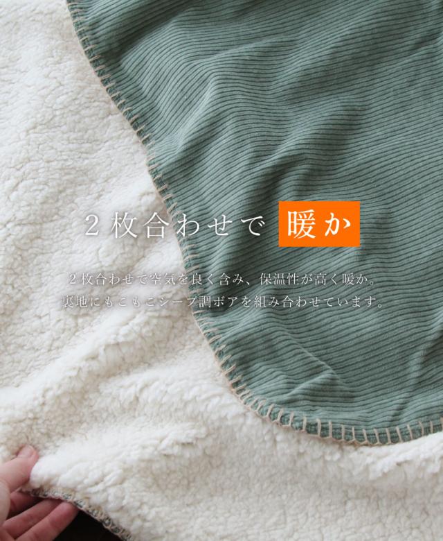 【宅急便送料無料】コーデュロイ×ボア ブランケット【Mサイズ】 ひざ掛け 厚手 ステッチ かわいい おしゃれ シンプル おしゃれ