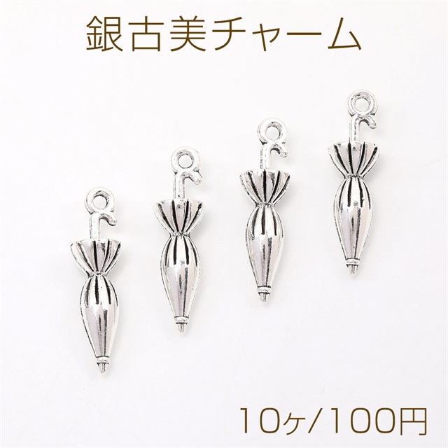 銀古美チャーム アンティークシルバー 立体メタルチャーム 傘(10ヶ)