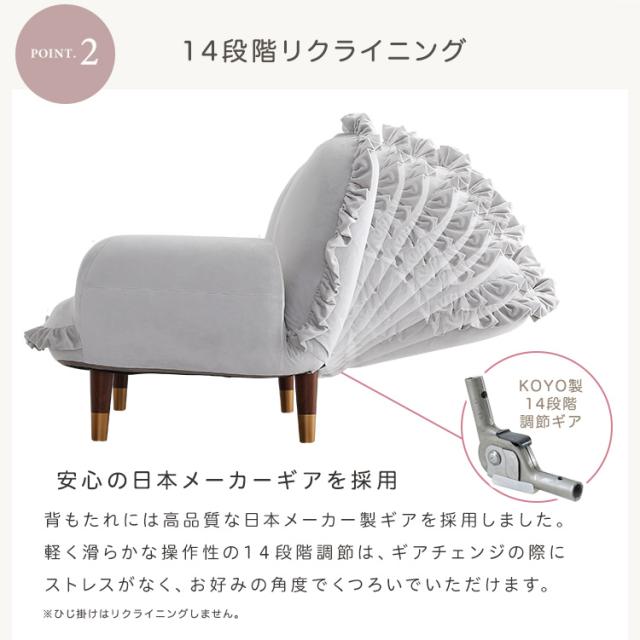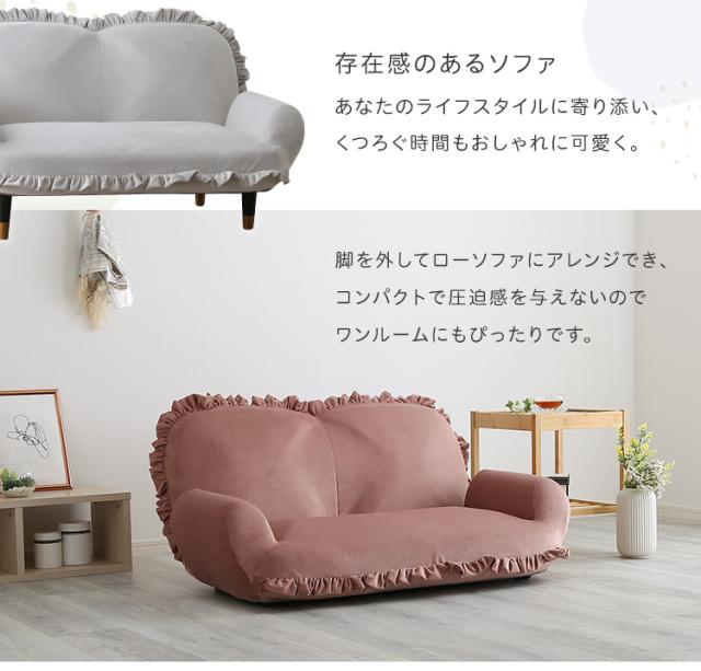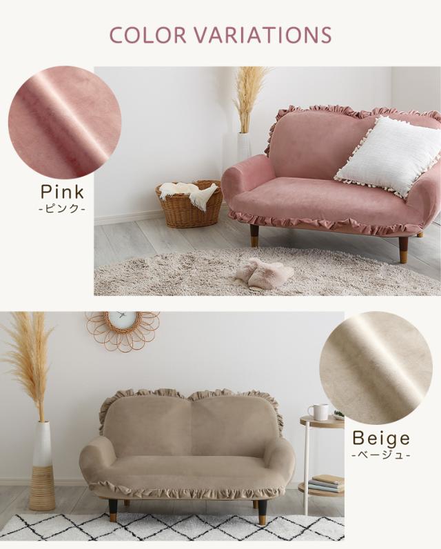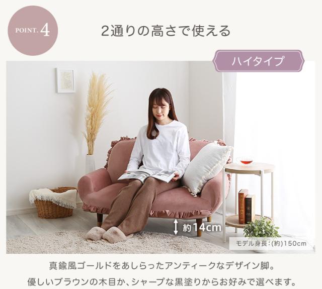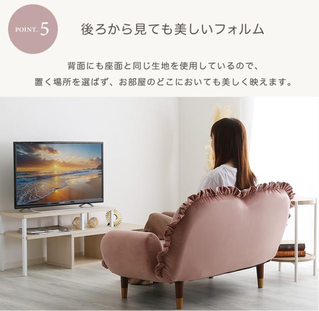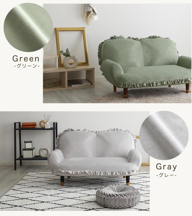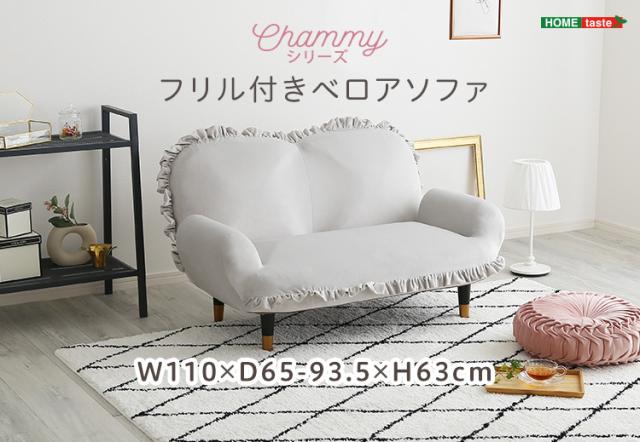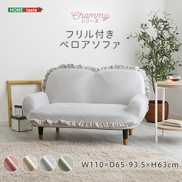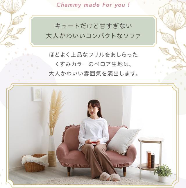 完成品 日本製 ソファ フリル付きベロアソファ Chammy(チャミー) 8タイプ対応 フロアソファ ローソファ リクライニング 脚付きソファ 2人掛け 2人用 ベロア生地 コンパクト リビング くすみカラー おしゃれ