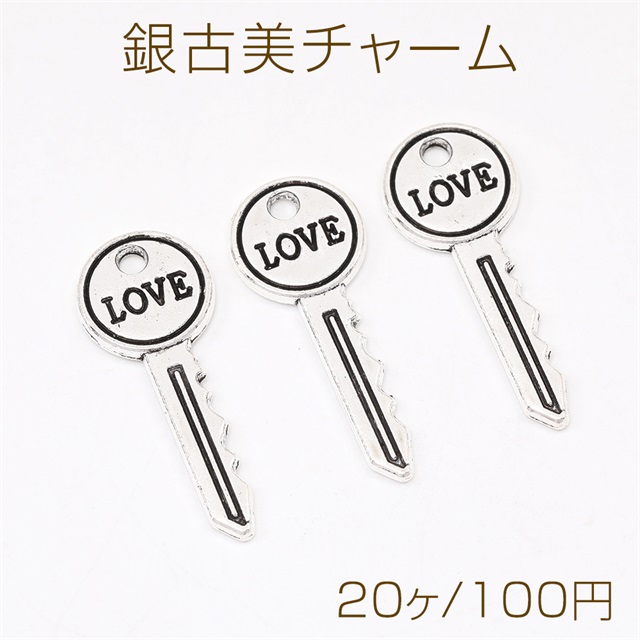 銀古美チャーム アンティークシルバー 立体メタルチャーム キー(20ヶ)