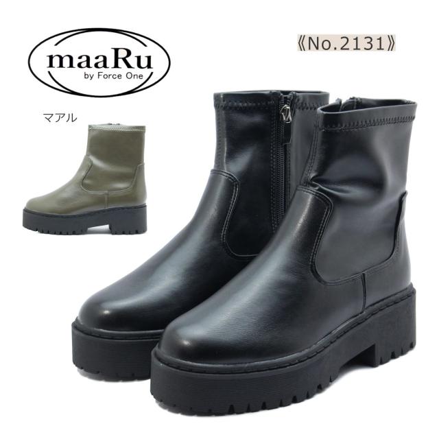 maaRu マアル マール レディース ブーツ 2131 ショート タンクソール ストレッチ マニッシュ 靴 黒 ブラック カーキ
