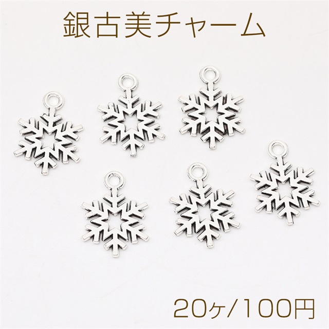 銀古美チャーム アンティークシルバー 立体メタルチャーム 雪結晶(20ヶ)
