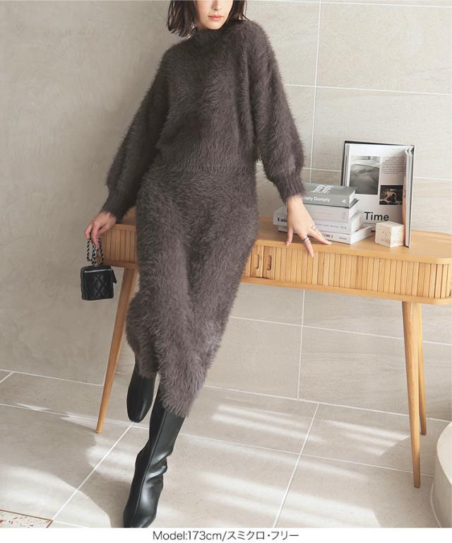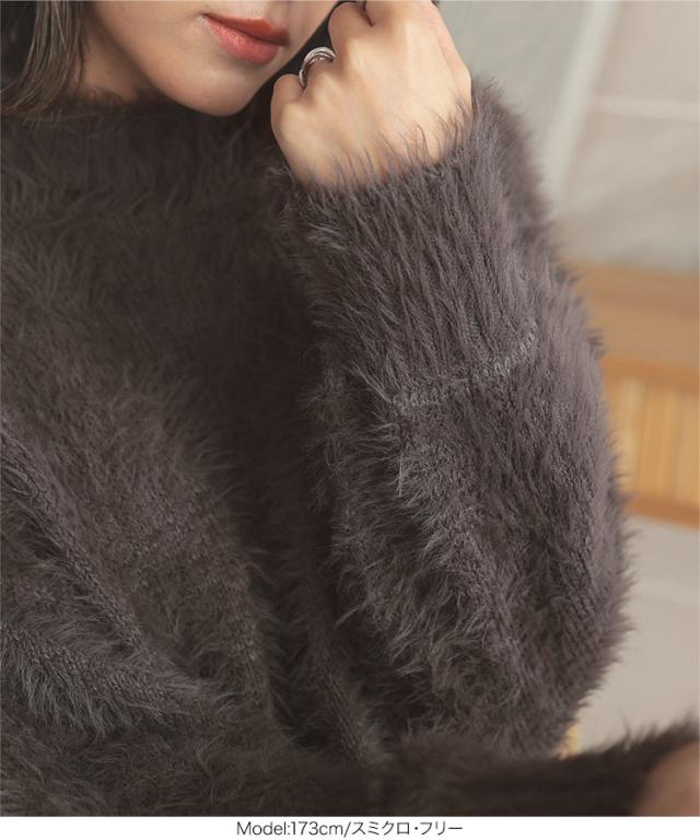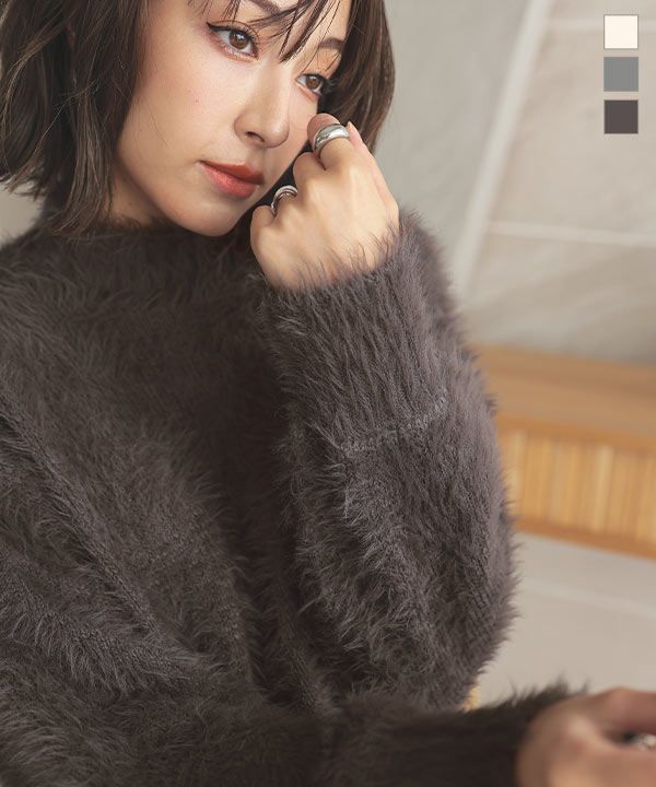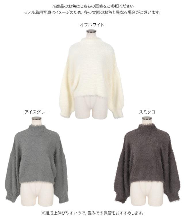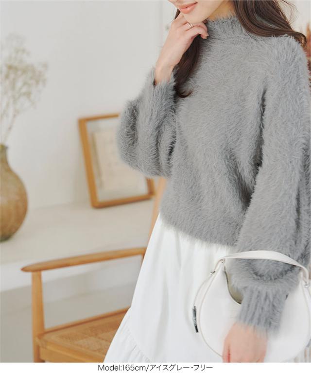 秋新作 シャギーニットモックネックニットトップス C6999 入荷済レディース トップス 長袖 ニット シャギー モックネック ハイネック フェザー 暖か セットアップ ショート丈 短丈 グレー 白 ホワイト 20代 30代 40代
