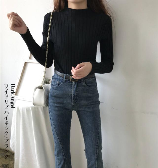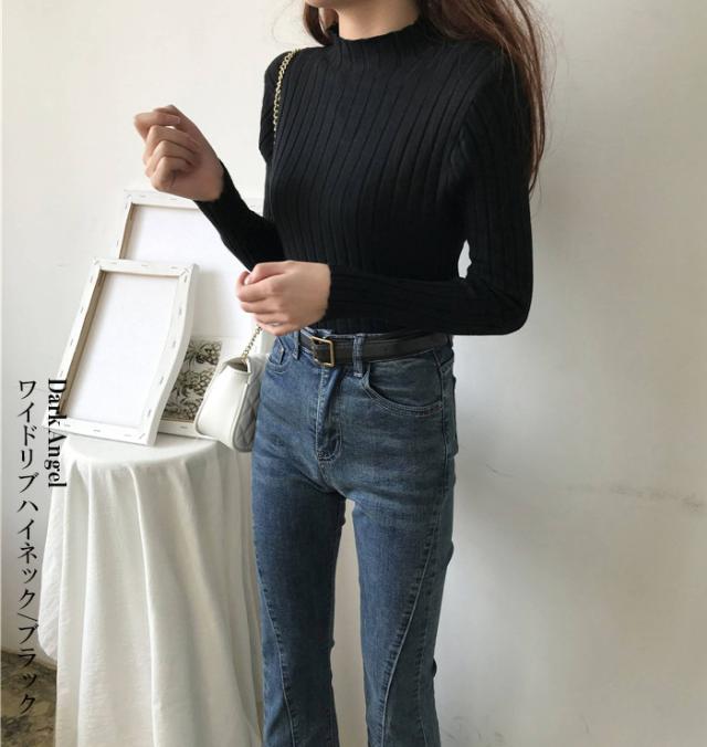 33%OFFクーポン!春新作 リブニット トップス ニットセーター 長袖 レディース リブハイネック タートルネック トップス セーター リブ ハイネック レディース 洗えるニット ウォッシャブルニット レディース ブラック 【 高伸縮リブニット】