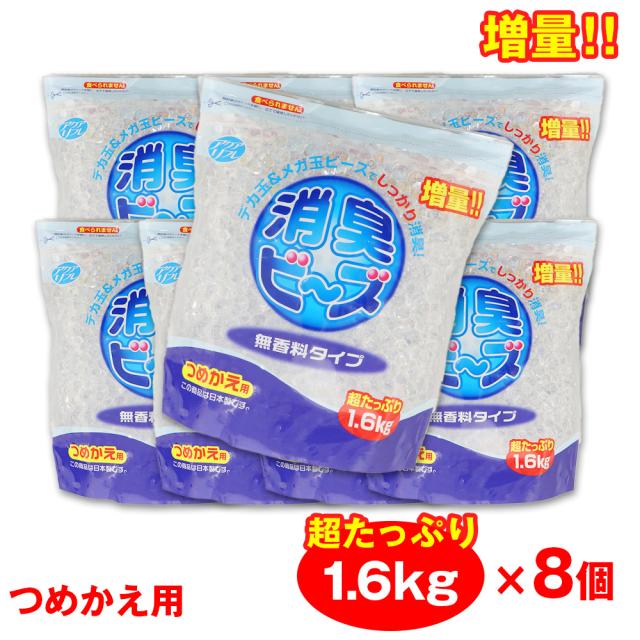 消臭ビーズ 詰め替え 消臭剤 大容量 1.6kg ×8個 アクアリフレ 無香料 つめかえ用 室内用 トイレ用 ペット用 日本製