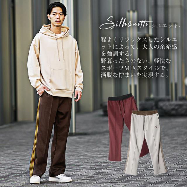 ジャージ メンズ サイドライン ジャージ パンツ メンズ トラックパンツ メンズ ワイドパンツ ジャージ素材 トレーニングパンツ 刺繍 ルームウェア 部屋着 チャコール ブラウン ワイン 秋 秋冬 秋服 メンズファッション ちょいワル お兄系 オラオラ系 夏新作 新作