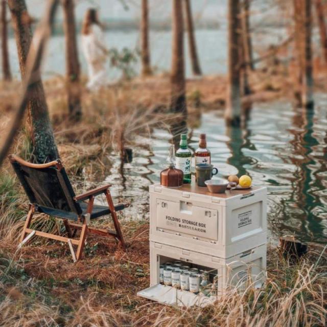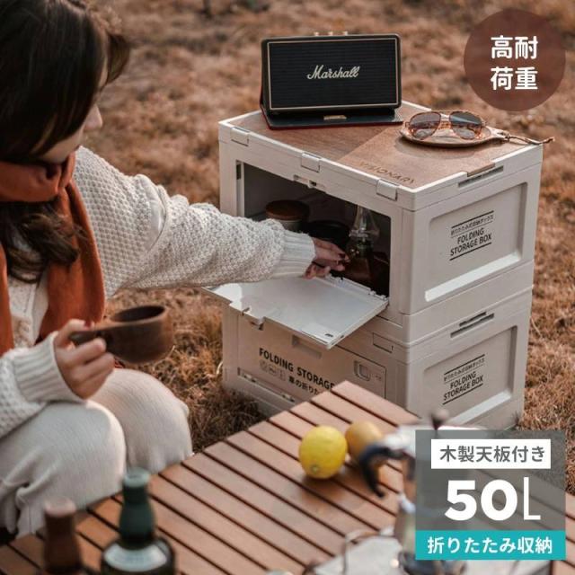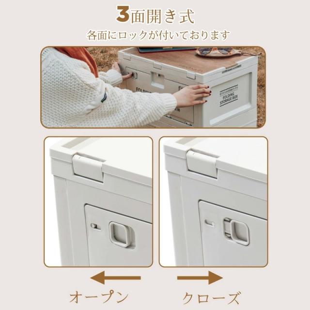 収納ボックス キャンプ用 50L 収納ケース コンテナ 折りたたみ 多機能 3面扉 ロック付き 積み重ね可能 高耐荷重 折りコン コンテナボックス 家庭 車載