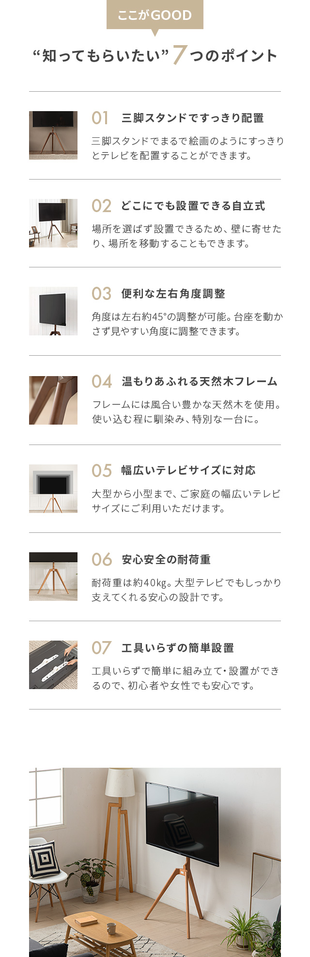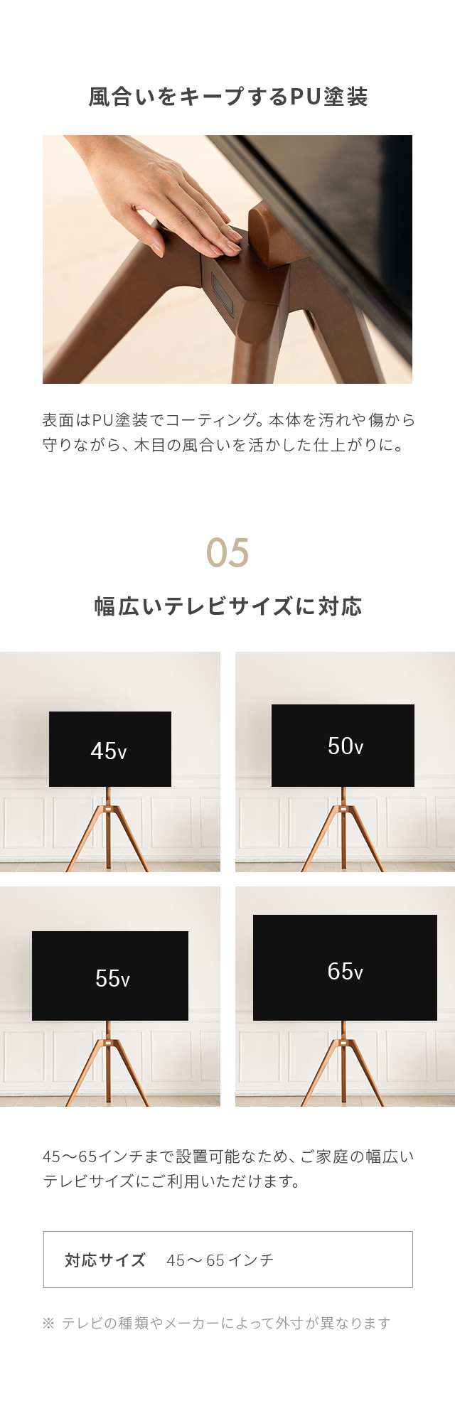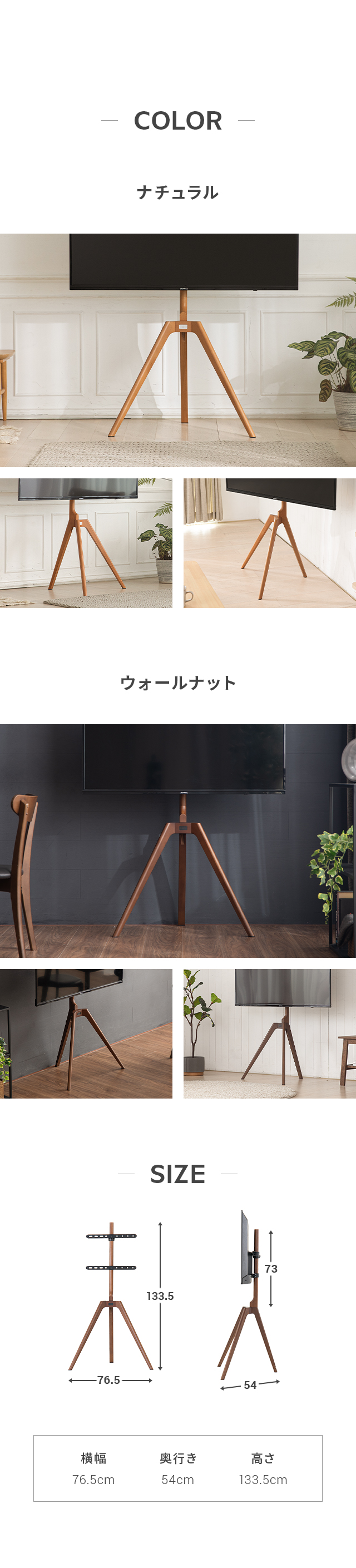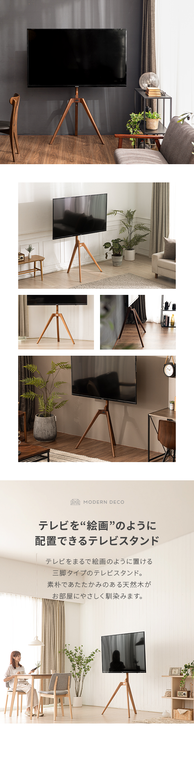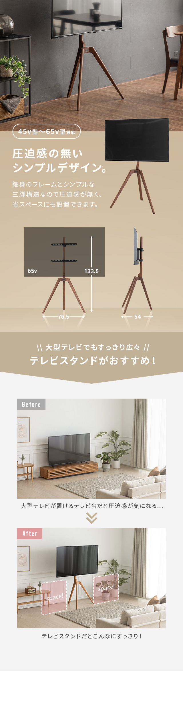 テレビスタンド おしゃれ 無垢材脚 ハイタイプ 壁寄せ 最大65型対応 簡単組み立て 三脚 テレビ台 ハイタイプテレビ台 シンプル スリム 薄型 配線隠し 伸縮 壁面 省スペース 壁寄せテレビスタンド 新生活