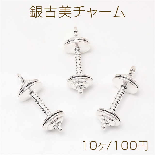 銀古美チャーム アンティークシルバー メタルチャーム スポーツチャーム ダンベル カン付き(10ヶ)