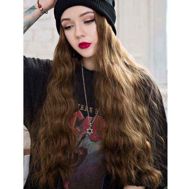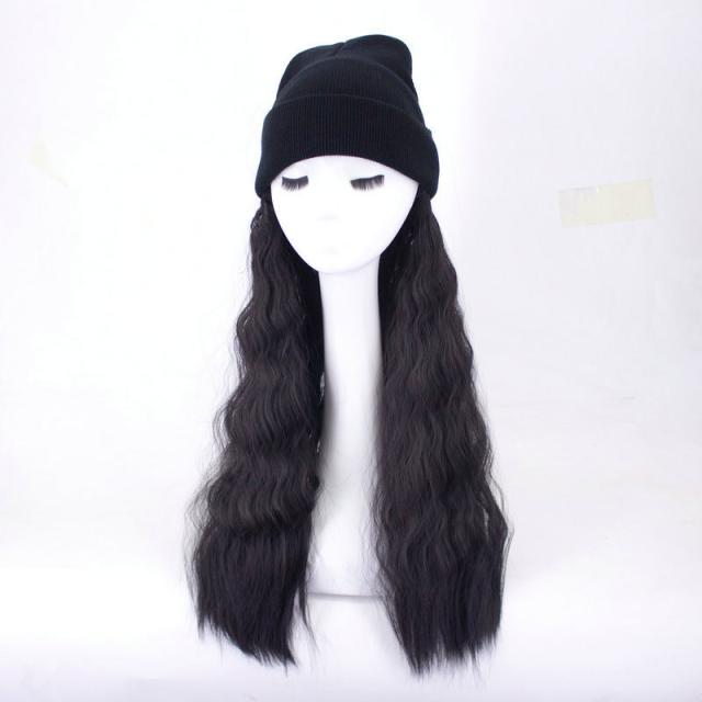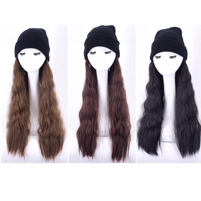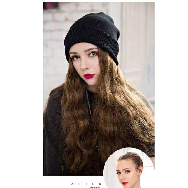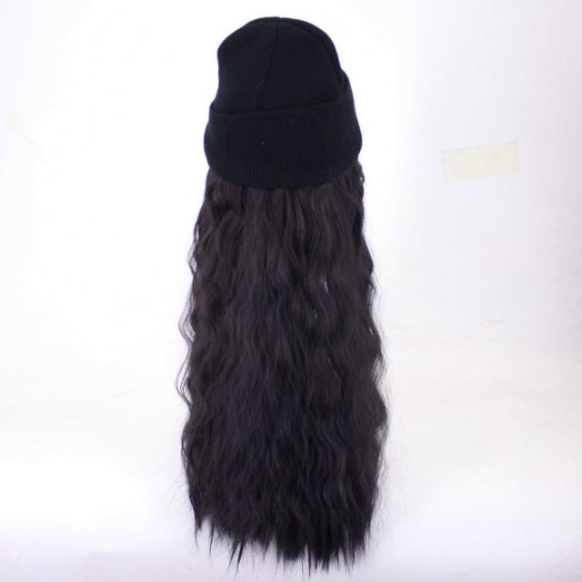 帽子ウィッグ レディース かつら ロング巻き 暖かい つけ毛 エクステ キャップ 髪付き帽子 セミロング 自然パーマ ニット 日常用 可愛い