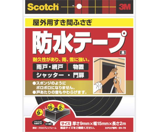 スリーエム スコッチ すき間ふさぎ防水テープ 屋外用 9mm×15mm×2m 黒 EN-78 1巻
