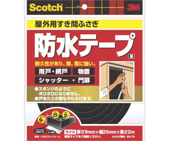 スリーエム スコッチ すき間ふさぎ防水テープ 屋外用 9mm×25mm×2m 黒 EN-79 1巻