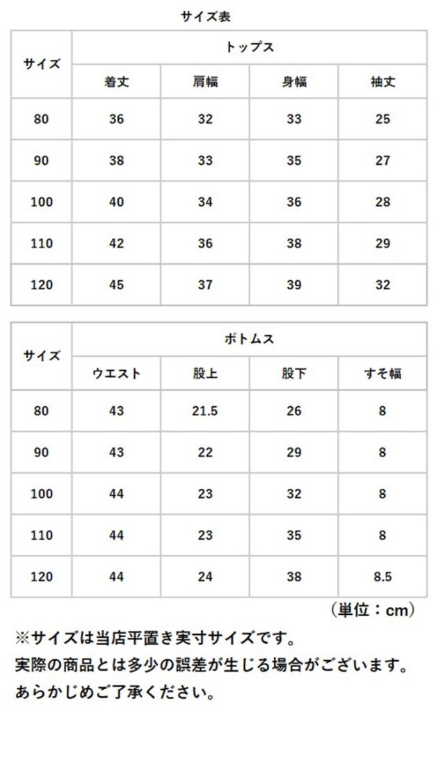 | サイズ | [キッズ] ・80cm ・90cm ・100cm ・110cm ・120cm ※サイズについて詳細は、商品画像の中にあるサイズ表をご覧くださいませ。 |