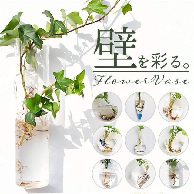 壁掛け 花瓶 通販 一輪挿し フラワーベース ガラス 花びん 花器 小さい コンパクト フック付き 倒れない 涼しげ 透明 クリア 壁飾り ウォールデコ リビング インテリア 水耕栽培